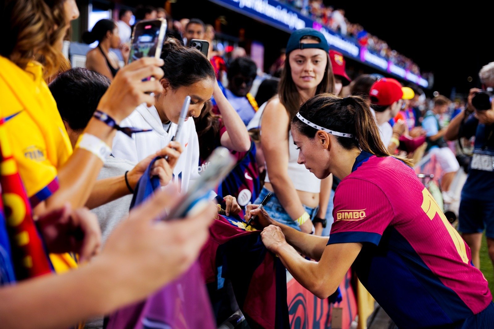 FC Barcelona Femení tour in the United States. This design captures the competitive spirit of the Catalan team, blending it with the power and epic nature of the American flag.